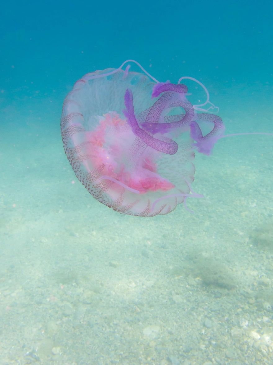 Η μωβ μέδουσα θεωρείται από τα πιο επικίνδυνα είδη μεδουσών στην Μεσόγειο και σύμφωνα με το Ελληνικό Παρατηρητήριο Βιοποικιλότητας, η πληθυσμιακή έξαρση των μωβ μεδουσών στο Αιγαίο έχει ξεκινήσει από τον Οκτώβριο του 2020 και αναμένεται να κρατήσει για περίπου 2 χρόνια ακόμα.