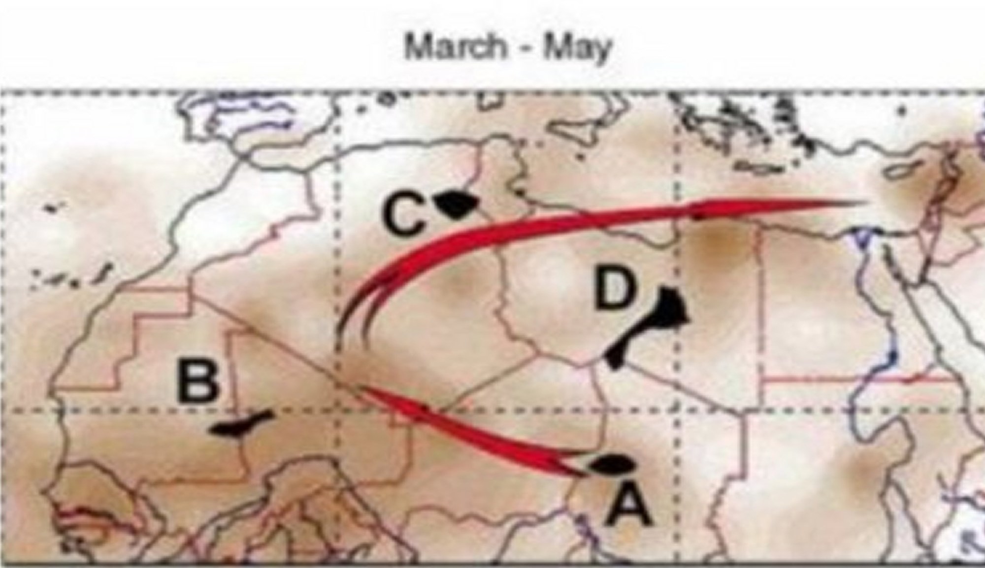 "Η μεταφορά σκόνης προς την κεντρική Μεσόγειο χαρακτηρίζεται από επεισόδια τα οποία διαρκούν από 2 έως 4 ημέρες. Η Κεντρική Αλγερία είναι η πιο συχνή περιοχή-πηγή αιωρούμενων σωματιδίων, καθώς επίσης άλλες πιθανές πήγες είναι τα βουνά Hoggar Massif και Tibesti στο βόρειο Chad.