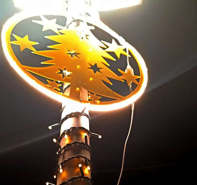Δεκάδες κολώνες φωτισμού, ακόμα και εκτός των ορίων της πόλης, ντυμένες με χριστουγεννιάτικα λαμπάκια, υποδέχονται κατοίκους και επισκέπτες, δίνοντας έναν έντονα εορταστικό και χαρούμενο τόνο.