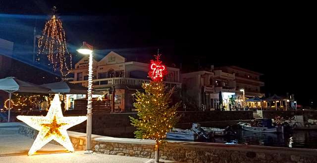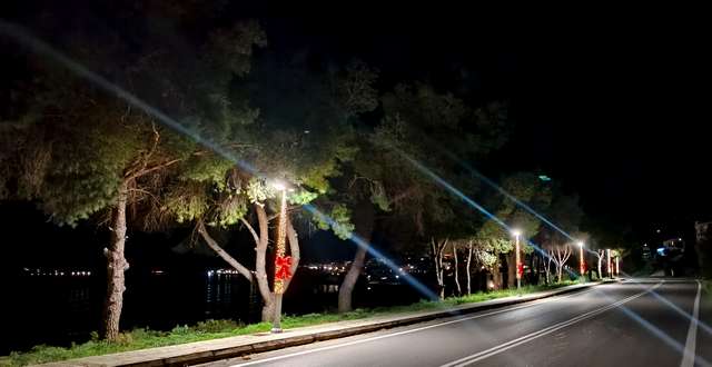 Κατά μήκος του παραλιακού μετώπου υπέροχα φωτισμένα στολίδια, με ταυτόχρονη διακόσμηση των στύλων φωτισμού, δίνουν πραγματικά μια άλλη διάσταση στο γιορτινό στολισμό της πόλης.