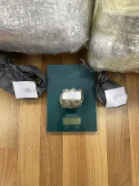 • 31.600 γραμμάρια κατεργασμένης κάνναβης με τη μορφή σοκολάτας, διαμοιρασμένη σε 315 νάιλον συσκευασίες,